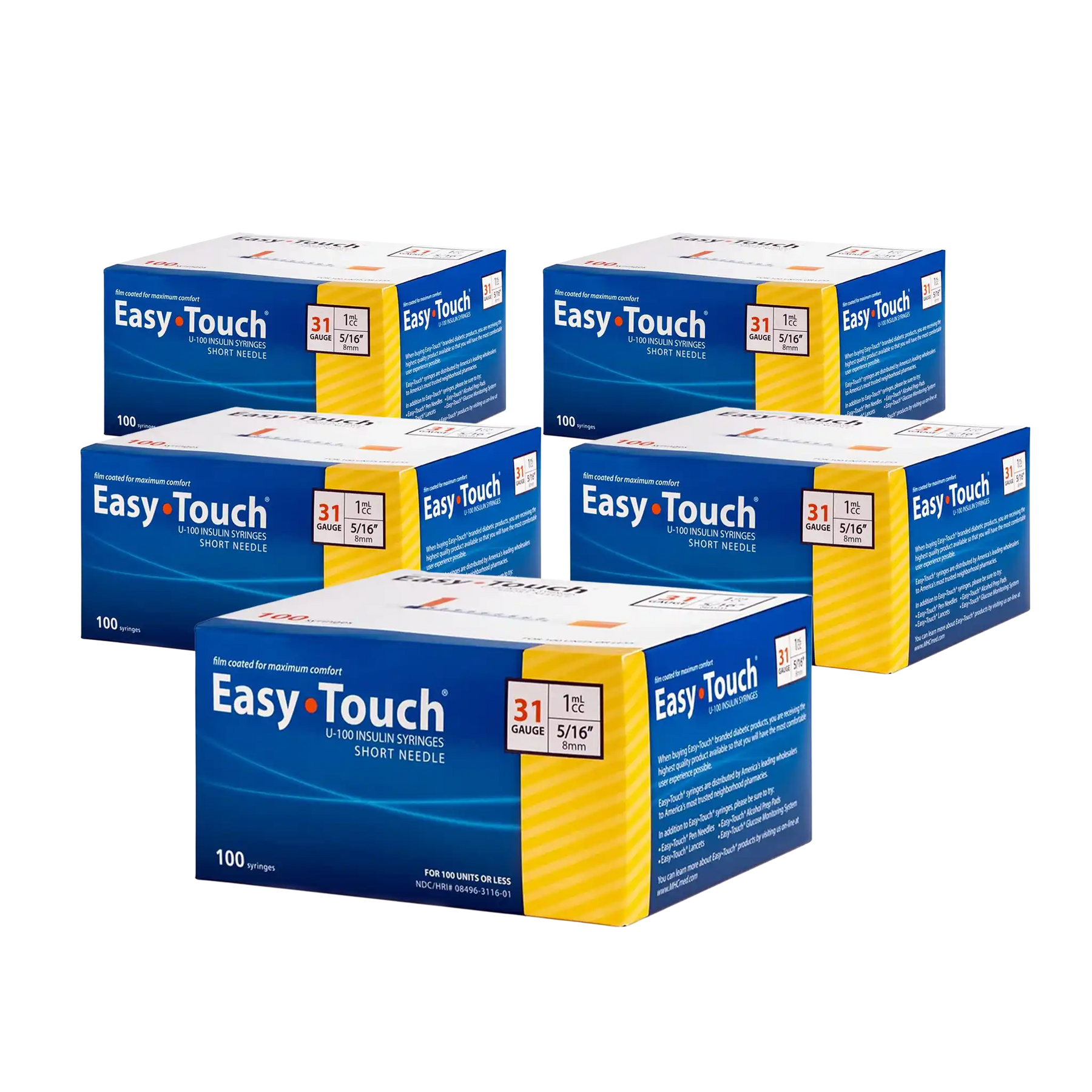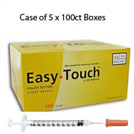 - Case of 5 EasyTouch Insulin Syringe - 31G 1CC 5/16" - BX 100