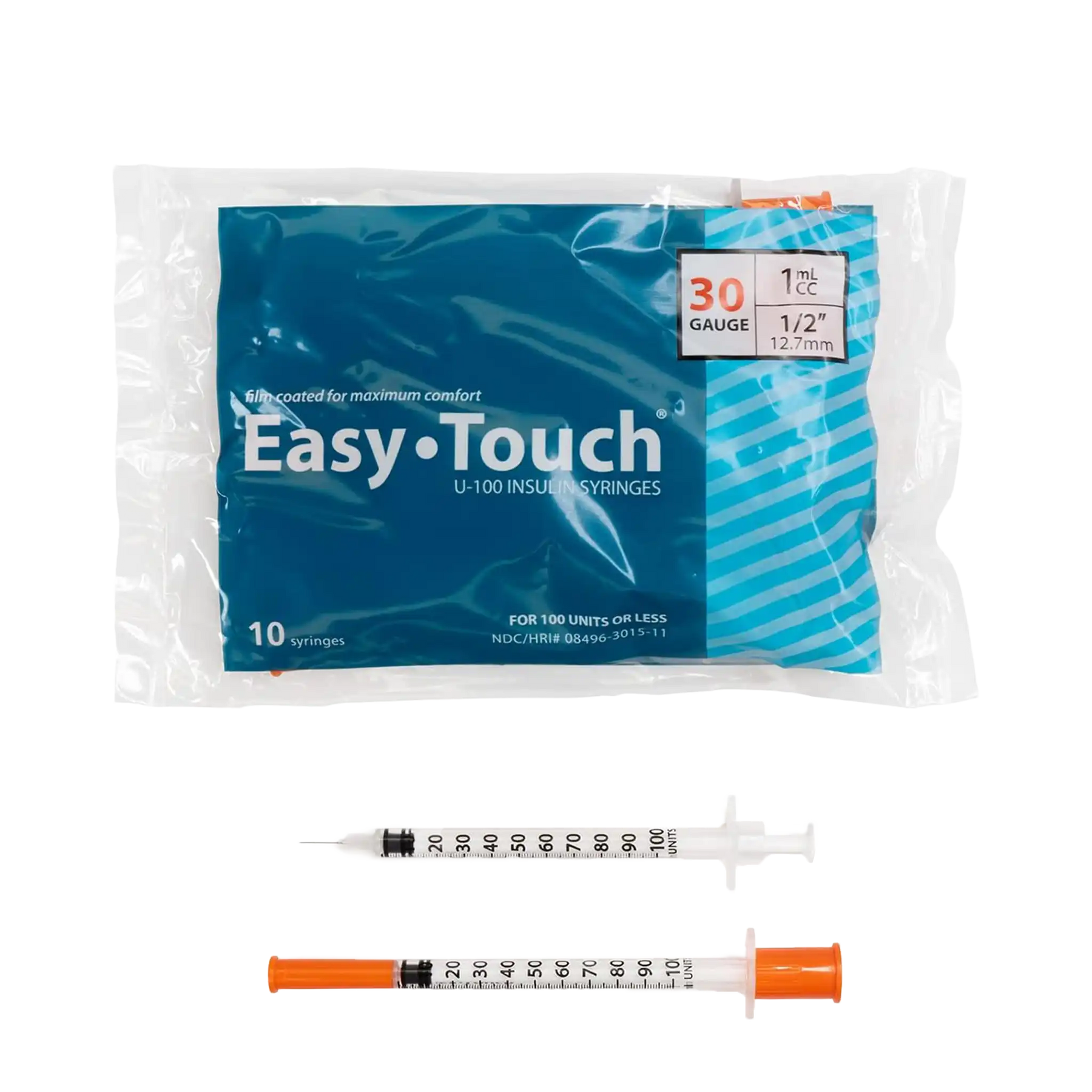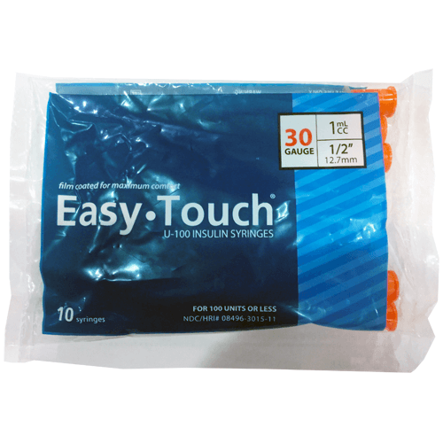 Comfort meets syringes; the EasyTouch Insulin Syringe is film coated for maximum comfort and lines up precisely for accurate dosage. They have no "dead space" for accurate dosage and less waste. 100% latex free. Easy Touch 30 gauge 1cc insulin syringes provide the best combination of quality, comfort, and value.